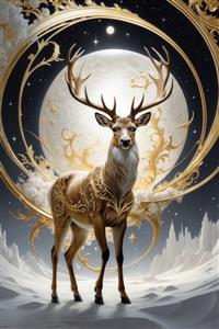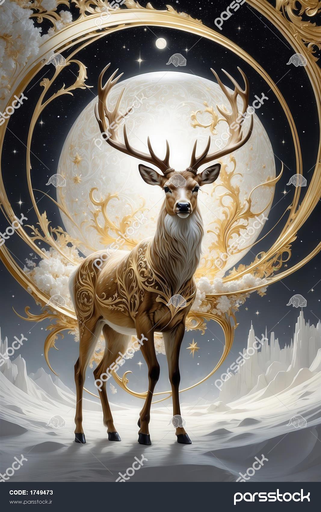 گوزن طلایی بر روی تپههای آبی، منظره کوهستانی در شب با ماه کامل بزرگ گوزن طلایی و ماه بزرگ در گوی شیشهای با موجهای آبی، اثر سه بعدی چینی جدید پرتره السا با تاج طلایی و الماس بزرگ آبی، طرح دایرهای با تم شب برفی برای چاپ تصویر مجلل ملکهی آسمانی با بالهای بزرگ طلایی برای چاپ پرتره شیر سلطنتی با یونیفرم تیره و نشان بزرگ طلایی برای چاپ روتختی طرح پرتره زن با تاج خورشید طلایی و ماه بزرگ برای روتختی تصویر برج ایفل پاریس فانتزی با ماه بزرگ و حبابهای آبی برای چاپ روی کوسن تصویر کرهی بزرگ طلایی فانتزی در آسمان شب تاریک برای چاپ پوستر دیواری طرح آنجلینا جولی الهه طلایی با گوی بزرگ ماه برای دکوراسیون عکس آنجلینا جولی فانتزی با تاج طلایی و ماه بزرگ برای تابلو نمایش همه