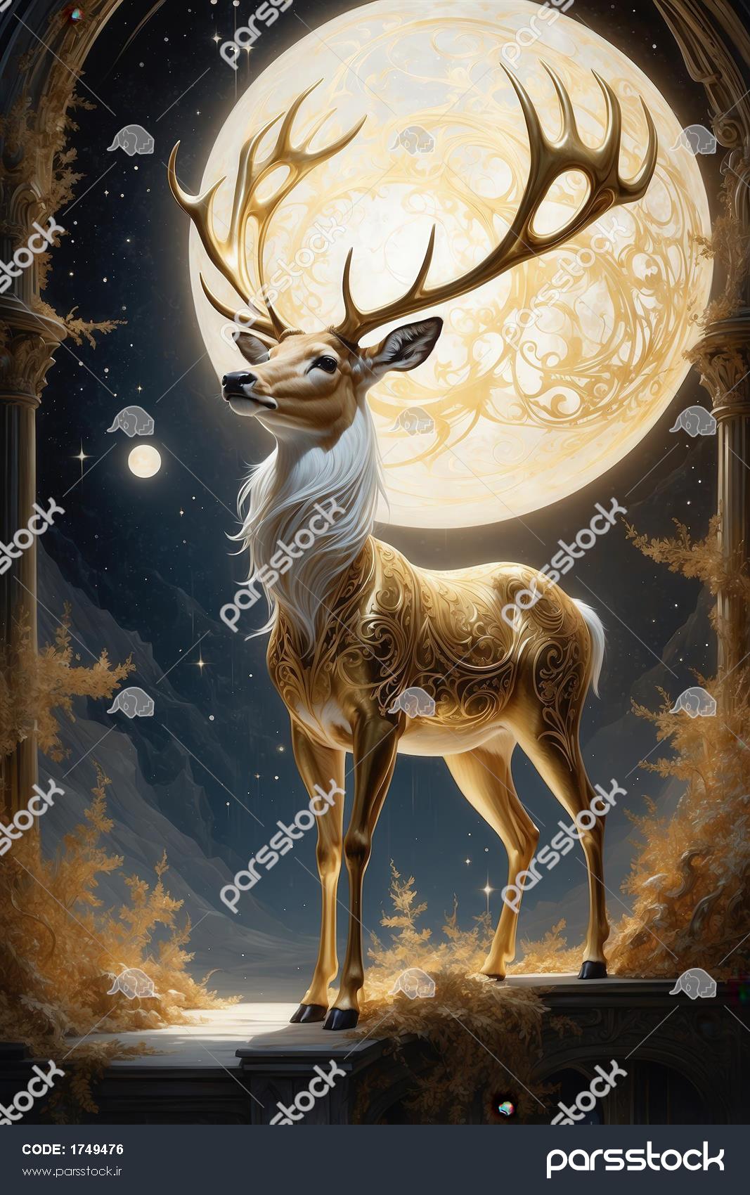 عکس گوزن اشرافی سفید و طلایی در قاب دایرهای با ماه کامل در شب طرح گوزن سلطنتی سفید با شاخ طلایی و ماه بزرگ برای چاپ روی پرده عکس آهوی قهوهای در محیط برفی و ماه کامل طلایی در قاب اشرافی تصویر آهوی سفید و طلایی شاخبلند با پسزمینه ماه در کوهستان برفی طرح گوزن قهوهای با یال سفید در قاب آینهای و ماه طلایی فانتزی عکس گوزن قهوهای شاخدار در کنار آبشار با پسزمینه ماه طلایی تصویر گوزن قهوهای فانتزی در قاب طلایی روی موج ابر با ماه و ستاره تصویر گوزن قهوهای سلطنتی بر فراز صخره با ماه طلایی بزرگ برای دکور عکس گوزن قهوهای با تزئینات طلایی و ماه بزرگ در میان برف برای چاپ عکس آهوی سلطنتی برفی با شاخهای هلالی و ماه طلایی برای تابلو مشاهده همه