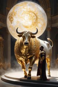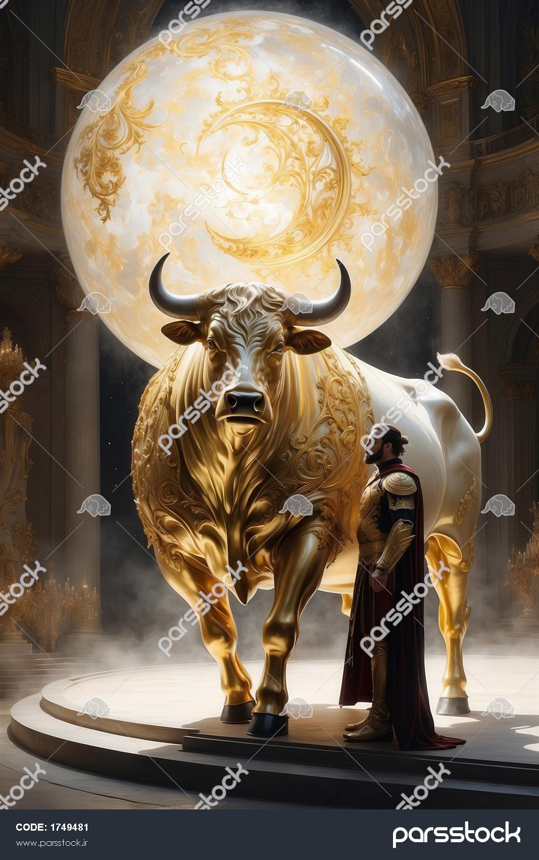 طرح گاو طلایی و شوالیه در کاخ با گوی نورانی نماد ماه تولد تارس