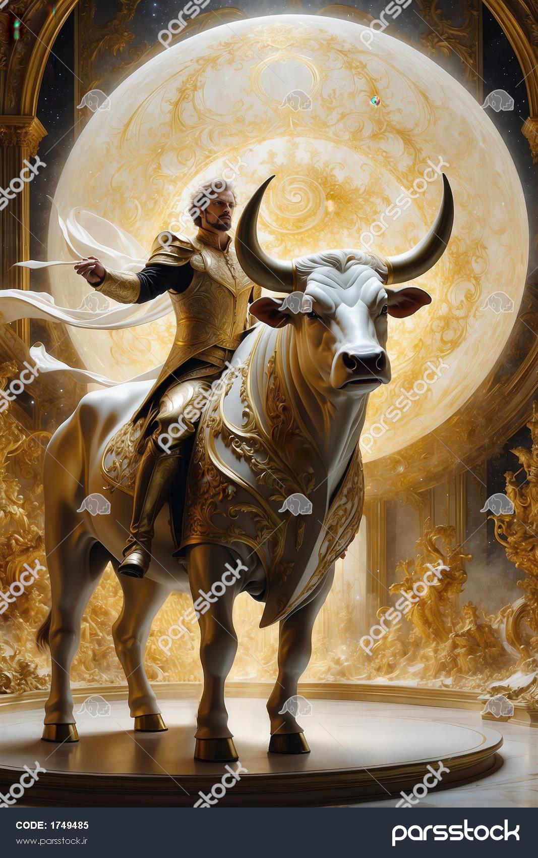 تصویر مرد جنگجو سوار بر گاو سفید در آسمان شب و ماه کامل طلایی عکس شوالیه یا جنگجوی طلایی سوار بر گاو سفید نماد ماه تولد تارس طرح گاو طلایی و شوالیه در کاخ با گوی نورانی نماد ماه تولد تارس عکس شوالیه تارس بر گاو سفید در حال تاختن با زمینه ماه و حلقه طلایی طرح شوالیه تارس سوار بر گاو سفید با پسزمینه ماه فانتزی باکیفیت عکس جنگجوی طلایی بر گاو سفید در قاب آینهای و ماه کامل برای تابلو تصویر گاو نر سیاه و طلایی نماد ماه تولد تارس باکیفیت برای تابلو طرح گاو نر طلایی و سفید با شاخ بزرگ نماد ماه تولد تارس برای چاپ تصویر آهوی طلایی و سفید در ایوان باستانی با پسزمینه ماه کامل تصویر گوزن قهوهای سلطنتی بر فراز صخره با ماه طلایی بزرگ برای دکور مشاهده همه