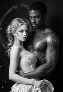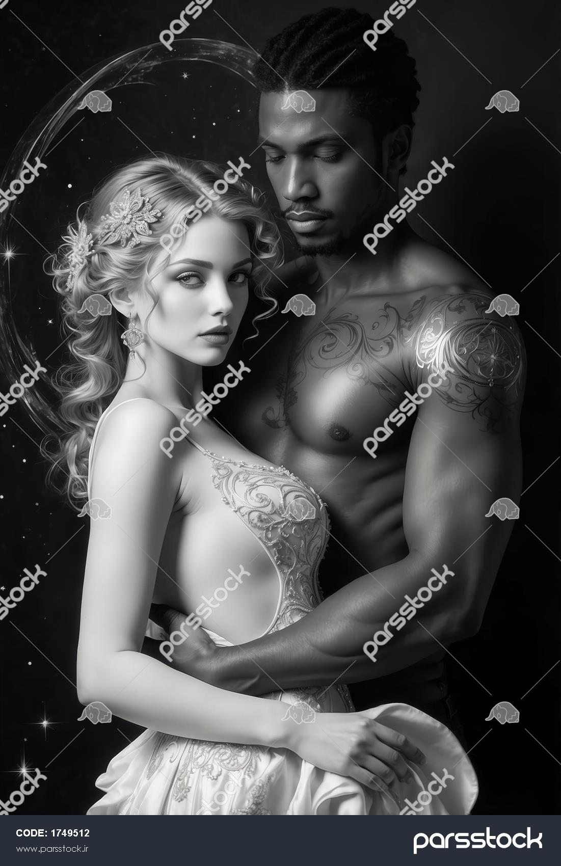 عکس پرتره زوج عاشقانه فانتزی نور و تاریکی با کنتراست سیاه و سفید