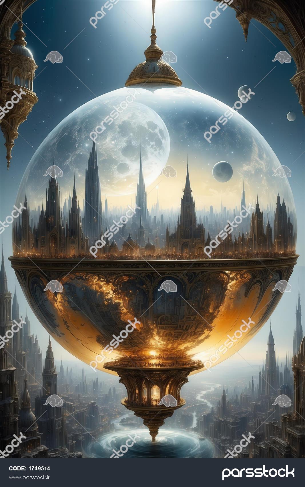 تصویر شهر فانتزی در حباب شیشهای بزرگ جلوی برجهای گوتیک عکس قلعه فانتزی معلق در حباب شیشهای بزرگ بالای آب تصویر شهر بازتاب شده در کره شیشهای بزرگ زیر نور ماه طلایی تصویر شهر سایبرپانک فانتزی در کره شیشهای بزرگ زیر نور ماه طرح شهر قلعهای فانتزی با پلهای قوسی و ماه بزرگ کهکشانی عکس قلعه فانتزی محبوس در کره شیشهای بزرگ بالای آب و ماه تصویر شهر گوتیک فانتزی با پلهای قوسی زیر ماه بزرگ طرح برج ایفل فانتزی در پاریس با ماه کامل بزرگ و حبابهای طلایی برای پرده عکس برج ایفل فانتزی با ماه کامل بزرگ و قاب سفید و طلایی برای پرده تصویر برج ایفل فانتزی با ماه کامل طلایی بزرگ در قاب برای تابلو دکوراتیو لوکس مشاهده همه