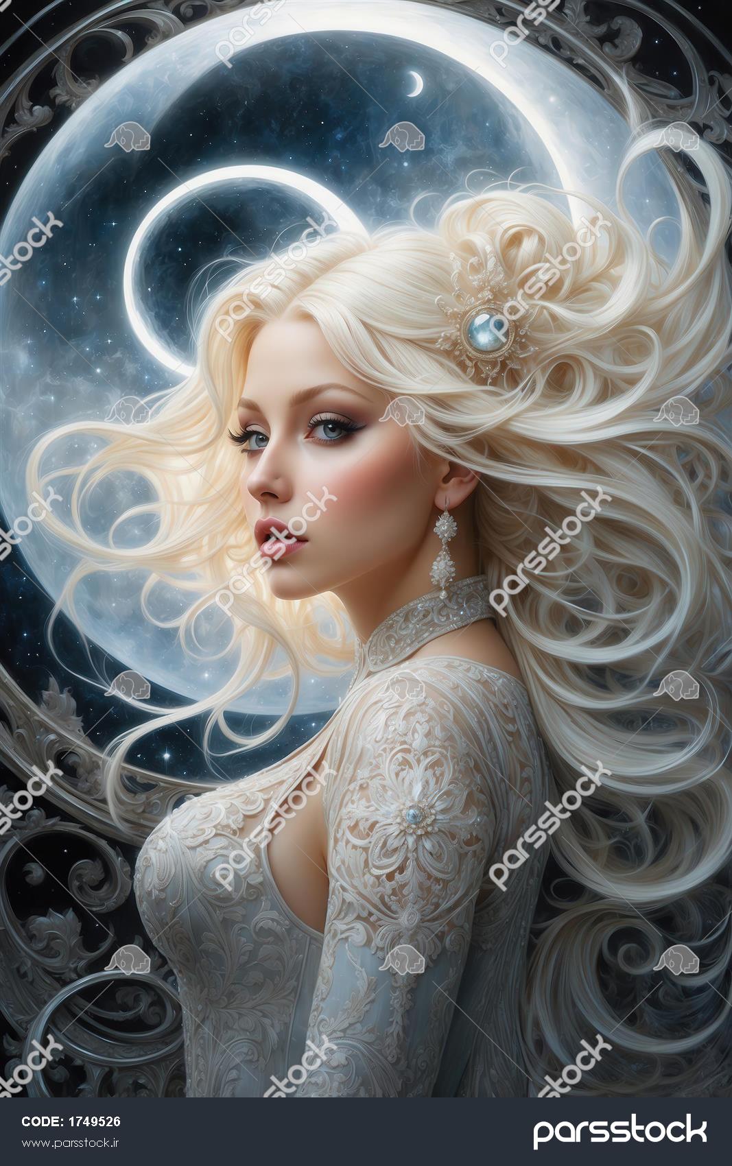 تصویر بانوی بلوند با لباس سفید درخشان جلوی ماه آبی طرح زن زیبای بلوند در فضای فانتزی برای چاپ روتختی طرح زن بالدار و تاجدار با لباس فاخر طلایی و آبی برای دکوراسیون پذیرایی طرح زن بالدار فانتزی طلایی و آبی با سبک آبرنگی برای چاپ روی پرده طرح پرتره زن با موی آبی تیره و تاج طلایی بالدار برای چاپ تابلو دکوراتیو طرح پرتره زن با تاج طلایی و ماسک آبی جواهرنشان برای تابلو اتاق پذیرایی عکس بانوی زیبای بلوند در قاب طلایی ماه برای پوستر دکوراسیون منزل طرح زن طلایی با موهای موجدار در قاب گرد کهکشانی برای چاپ پرده طرح دختر با موی یاسی روشن و سنجاق بنفش برای چاپ روی کوسن طرح زن جذاب با تاج و آرایش طلایی و گلبرگهای آبی برای پوستر نمایش همه