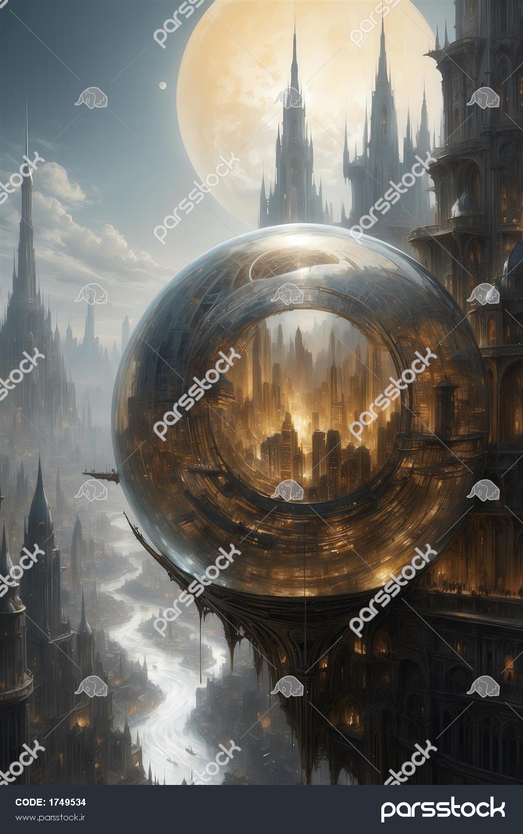 تصویر شهر معلق در حباب بزرگ زیر ماه کامل کهکشانی عکس قلعه فانتزی معلق در حباب شیشهای بزرگ بالای آب تصویر شهر بازتاب شده در کره شیشهای بزرگ زیر نور ماه طلایی تصویر شهر سایبرپانک فانتزی در کره شیشهای بزرگ زیر نور ماه تصویر شهر گوتیک فانتزی با پلهای قوسی زیر ماه بزرگ طرح شهر قلعهای فانتزی با پلهای قوسی و ماه بزرگ کهکشانی عکس قلعه فانتزی محبوس در کره شیشهای بزرگ بالای آب و ماه حباب های بزرگ و براق در اتاق سه بعدی تصویر برج ایفل پاریس فانتزی با ماه بزرگ و حبابهای آبی برای چاپ روی کوسن طرح برج ایفل فانتزی با ماه هلالی بزرگ و حبابهای طلایی برای پوستر دیواری مشاهده همه