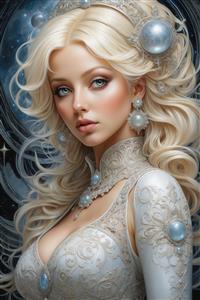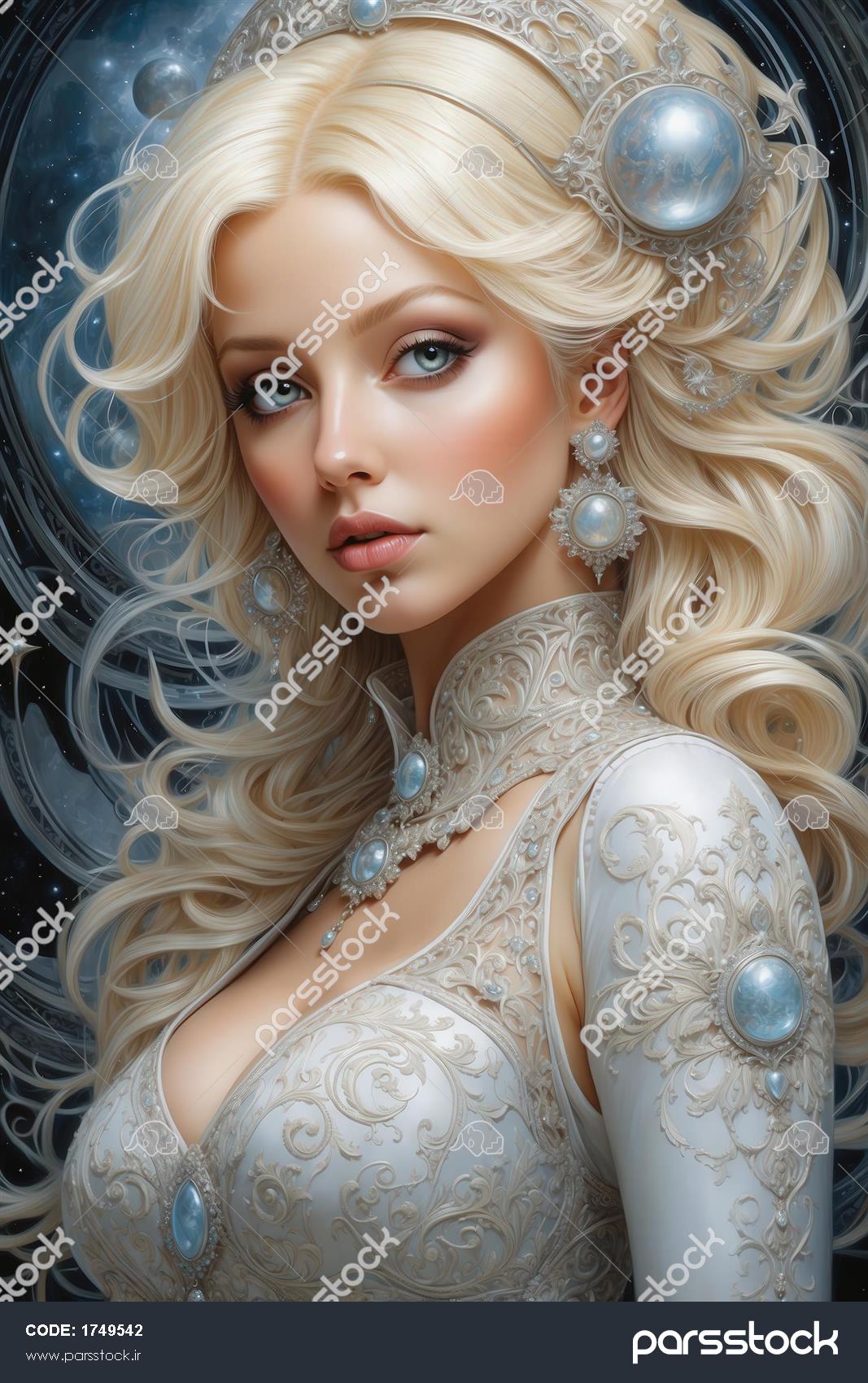 طرح پرنسس فضایی با لباس سفید و جواهرات آبی برای تابلو اتاق کودک