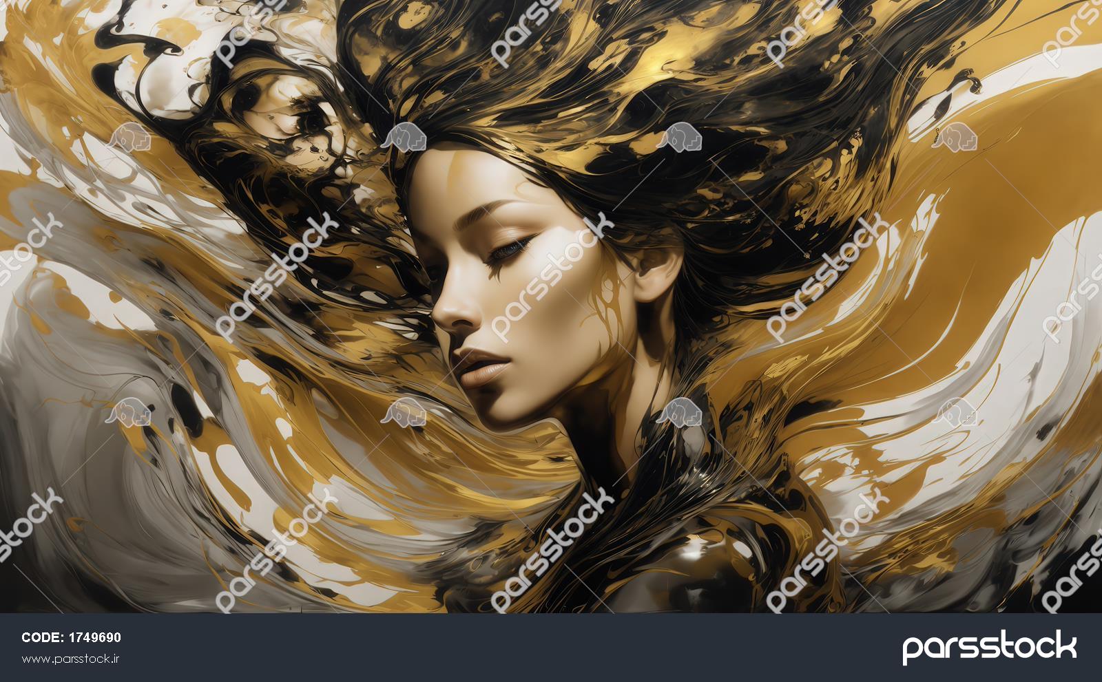 تصویر چهره زن با موهای طلایی و سیاه انتزاعی برای تابلو دکوراتیو باکیفیت