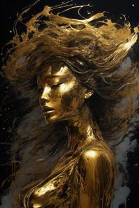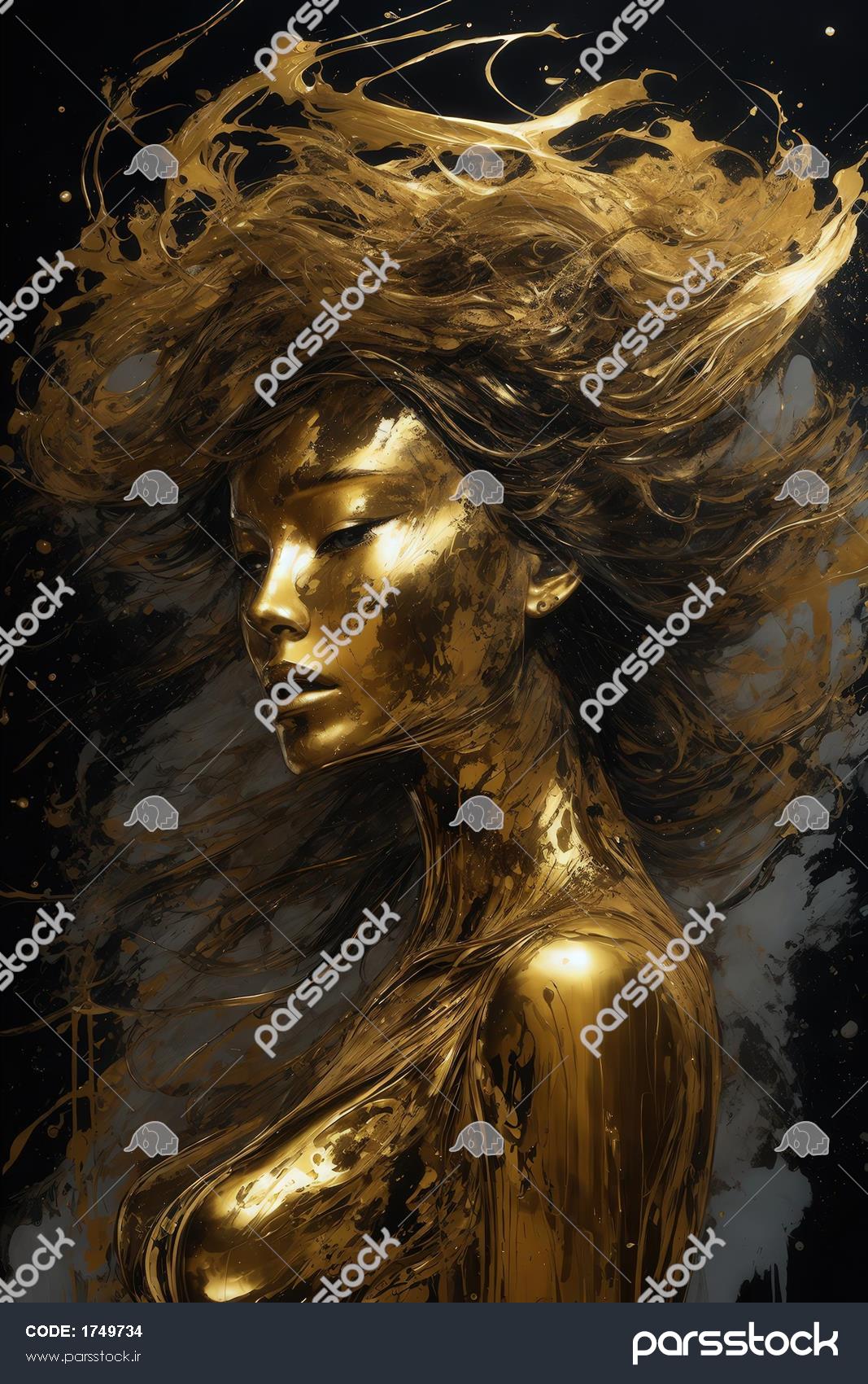 تصویر چهره زن با موهای طلایی روان و بدن براق برای پوستر دکوراسیون