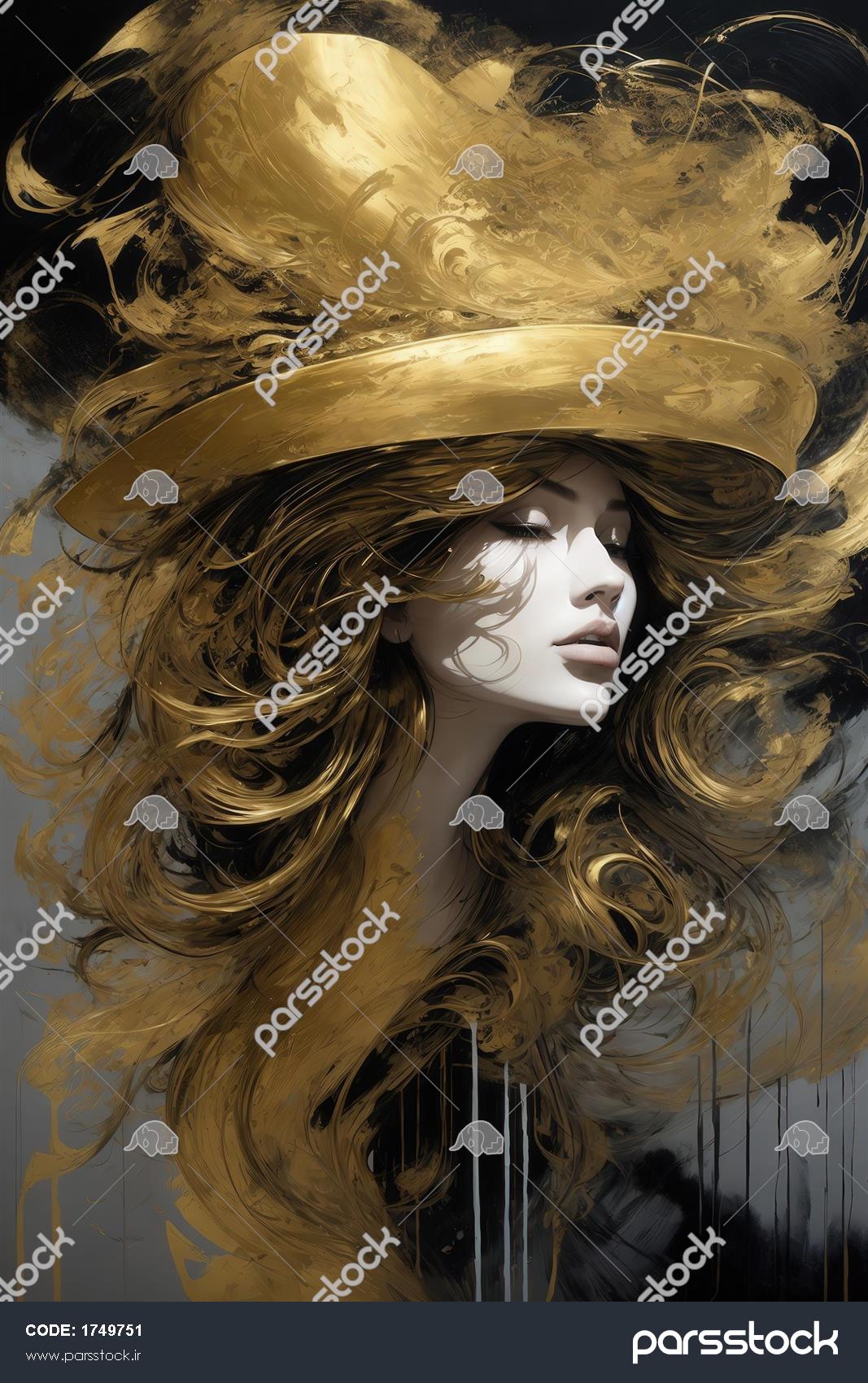 نقاشی زن با کلاه کلاسیک طلایی برای تابلو کافه