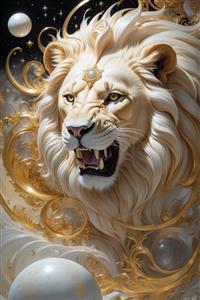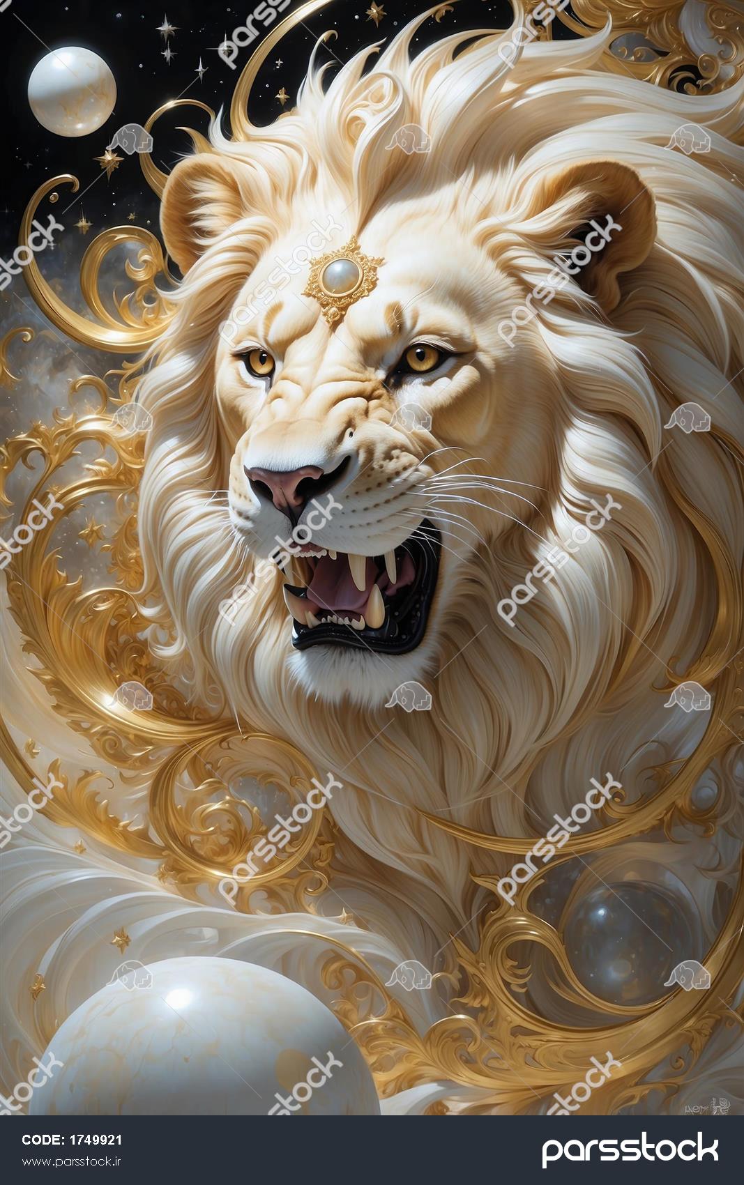 طرح شیر سفید غران با تزئینات طلا برای پوستر دیواری