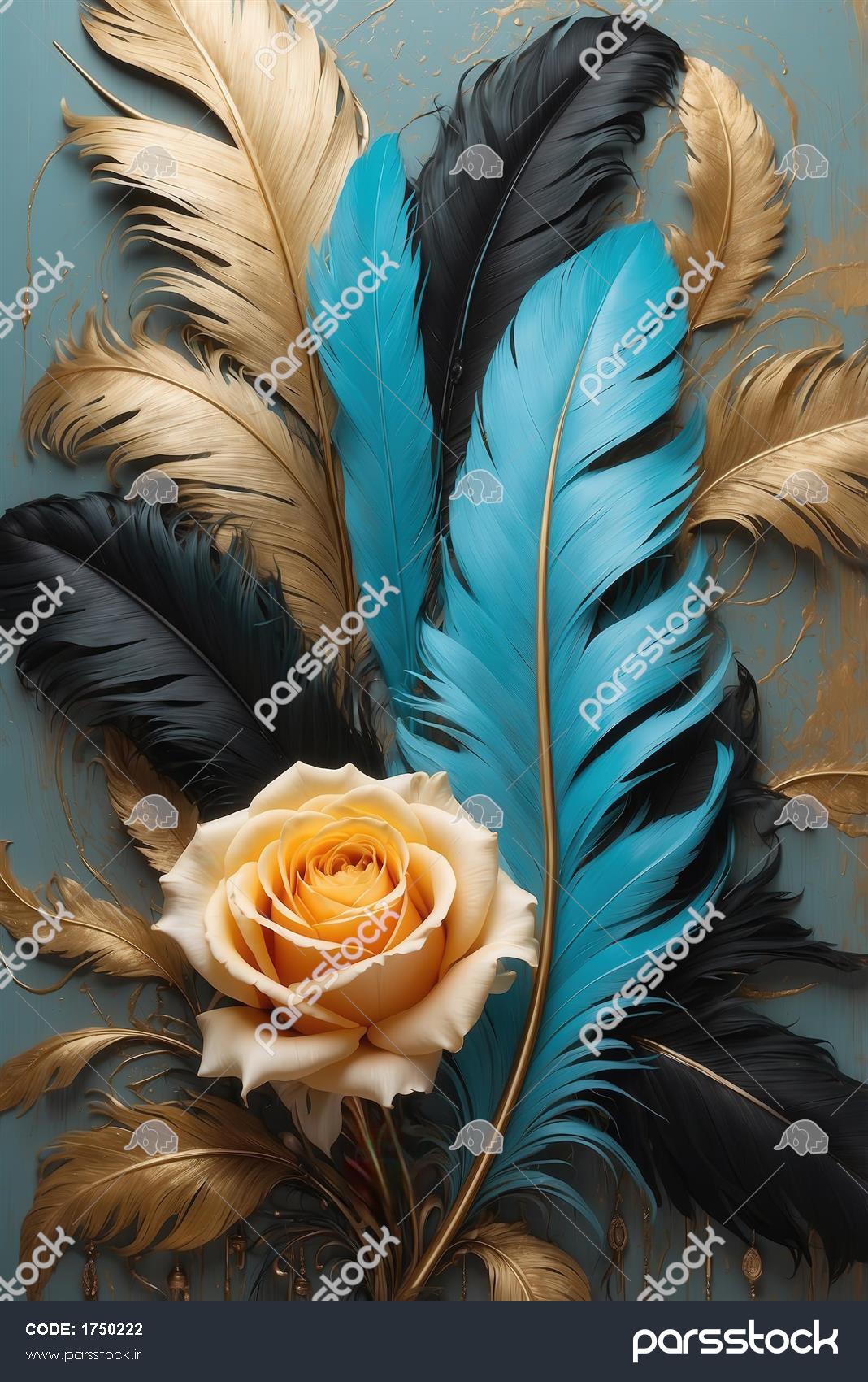 عکس پر فیروزهای و گل رز دکوراتیو باکیفیت طرح گل رز طلایی و مشکی فانتزی برای چاپ تابلو طرح گل رز طلایی و پر فانتزی برای چاپ تابلو تصویر تک پر فیروزهای و رز طلایی برای قاب طرح دکوراتیو پر و گل رز برای پوستر دیواری تصویر دو گل رز طلایی و پرهای فیروزهای در زمینه تیره برای دکور منزل طرح گل رز طلایی و پرهای آبی و قهوهای در پسزمینه تیره برای تابلو عکس دو گل رز طلایی با برگهای پهن آبی برای تابلو دکوراتیو نشیمن تیره طرح گل رز طلایی و پرهای آبی فیروزهای برای چاپ روی کوسن تصویر اورجینال گل رز طلایی و پرهای آبی، نقاشی سبک امپرسیونیسم برای پوستر و چاپ عریض نمایش همه
