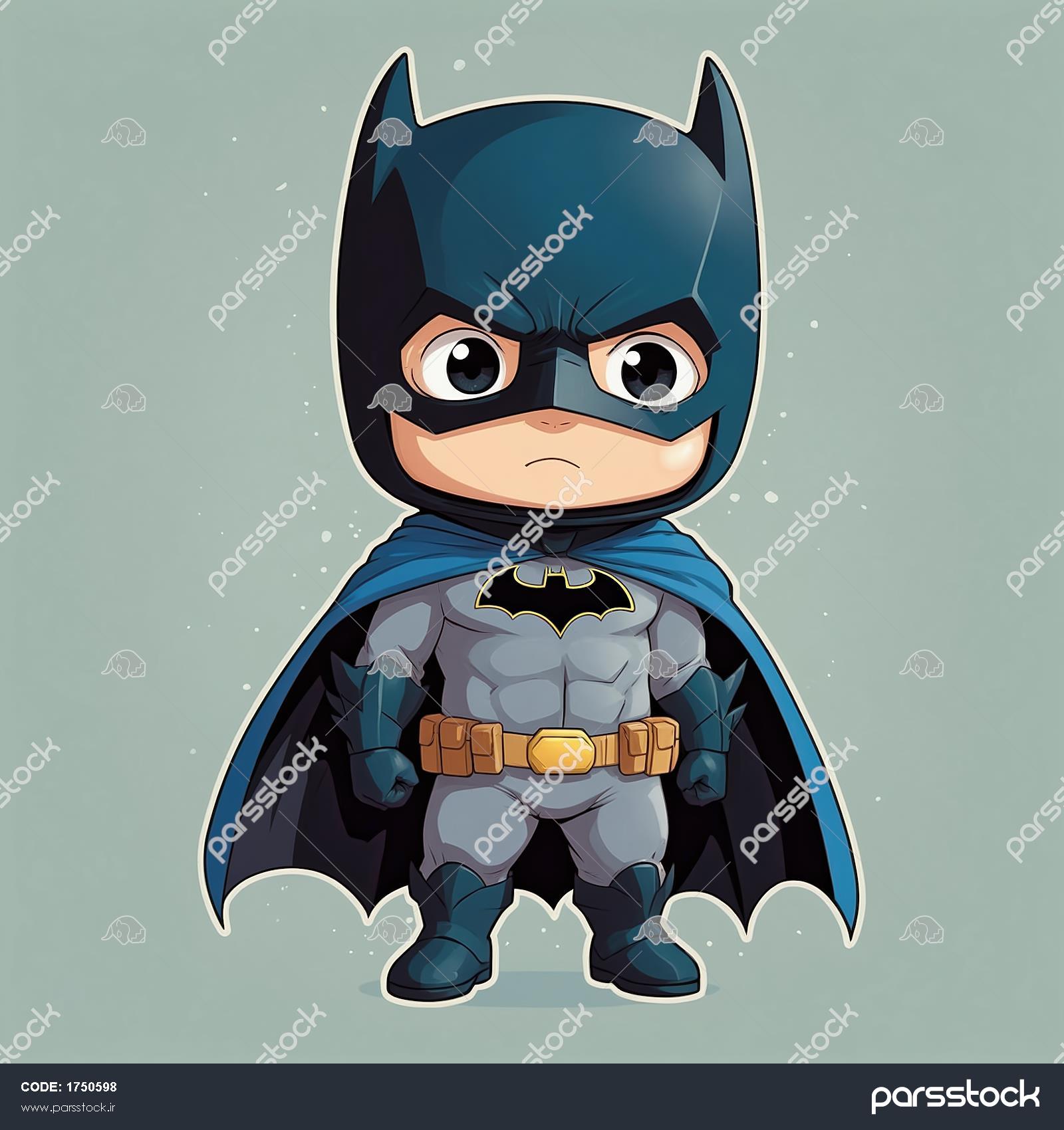 تصویر بتمن کارتونی با شنل آبی و چشمان براق