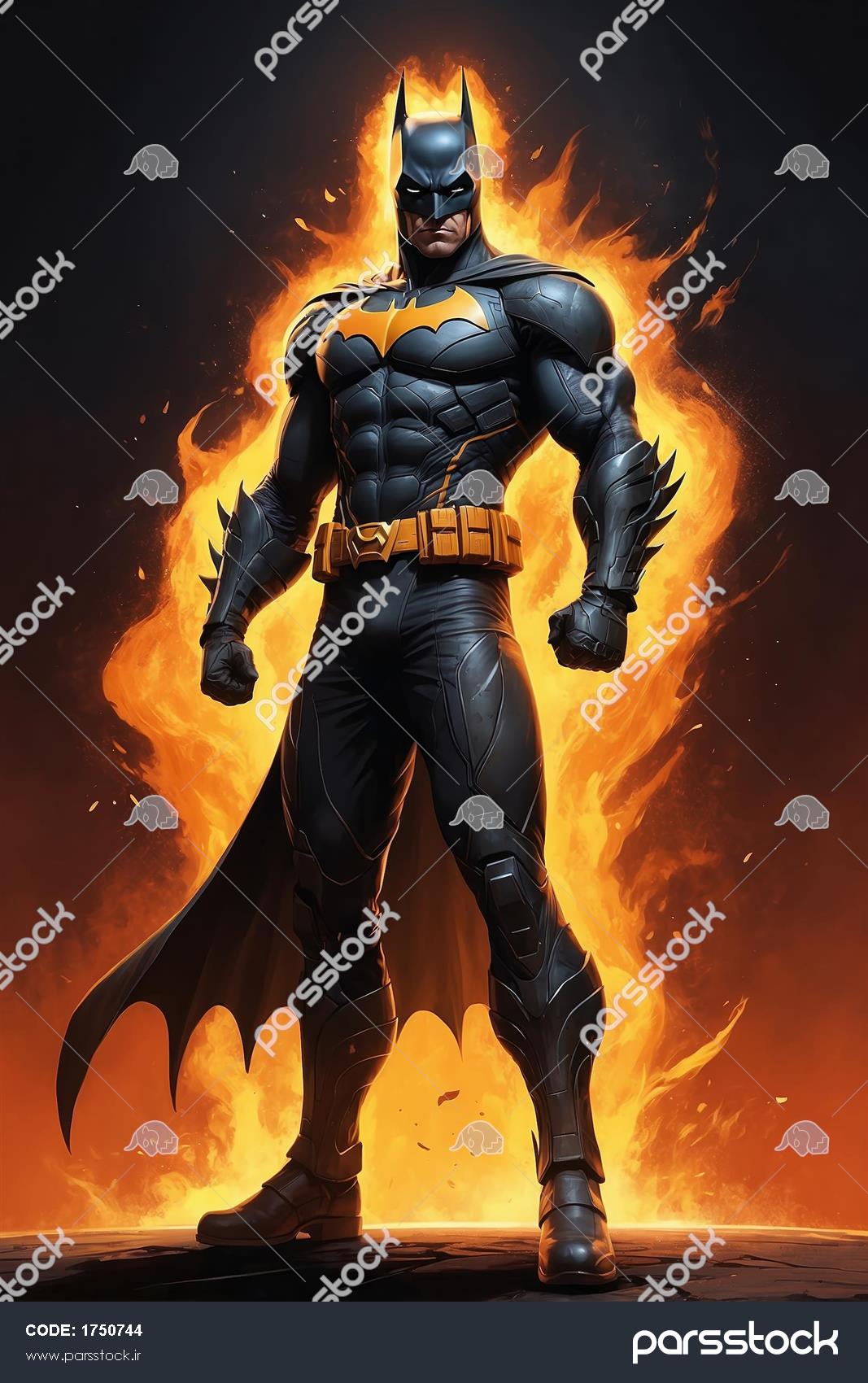 تصویر کامل بتمن فانتزی با هاله آتشین در تاریکی