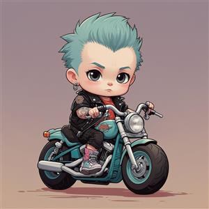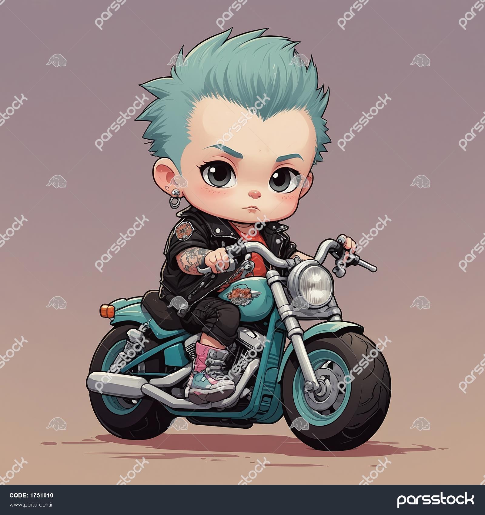 طرح پسر موتور سوار کارتونی با موی فیروزه‌ای