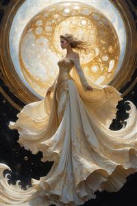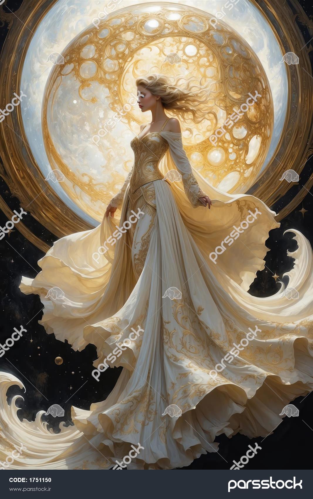تصویر زن فانتزی با لباس حریر سفید در کنار ماه عکس زن فانتزی ایستاده مقابل ماه کامل با لباس مجلل تصویر فانتزی ملکه با لباس سفید در تالار ماه تصویر زن فانتزی با لباس کار شده و گوی درخشان تصویر هنری زن زیبا با لباس بلند روی اسب زن با موهای بلوند بلند و لباس حریر درخشان، الهه نورانی با هاله اطراف سر، تصویرسازی عرفانی پرنسس سیندرلا در لباس آبی رقص در قاب بیضی طلایی با موی بلند تصویر فانتزی زن با لباس سفید توری و پسزمینه ماه تصویر کامل الهه پاییز طلایی با لباس بلند در جنگل مهآلود (نقاشی دیجیتال فانتزی) فرشته زن با بالها و تاج طلایی، لباس باشکوه و موهای بلند مشاهده همه