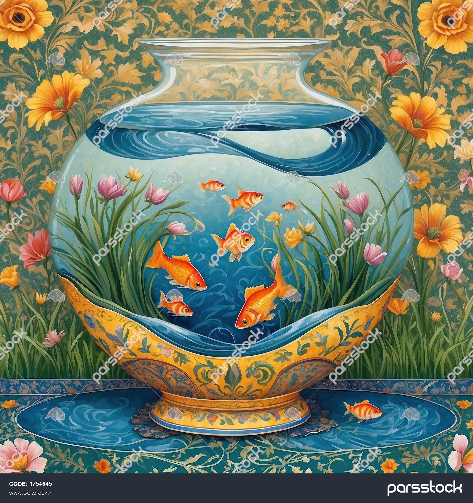تصویر گرافیکی تنگ ماهی و گلهای لیلیوم با ترکیب رنگ آبی و زرد برای پوستر دیواری اتاق خواب و چاپ روی ملحفه و کالای خواب طرح مینیاتور مدرن تنگ ماهی نوروز و گلهای بهاری زرد مناسب پوستر دیواری پذیرایی و اتاق خواب و چاپ روی روتختی طرح رویایی تنگ ماهی با سنگریزه و گلهای بهاری مناسب چاپ کاغذ دیواری نوروز تصویر فانتزی تنگ ماهی بزرگ میان باغچه گلهای بهاری ویژه چاپ نوروز طرح رویایی تنگ ماهی و شکوفههای بهاری برای چاپ نوروز طرح پانوراما تنگ ماهی قرمز و گلدانهای گل ویژه چاپ کاغذ دیواری سه بعدی نوروز نقاشی آبرنگ تنگ ماهی قرمز با گلهای نارنجی و صورتی رویایی برای چاپ پوستر نوروز نقاشی آبرنگی تنگ ماهی قرمز و گلدان گلهای نارنجی برای چاپ نوروز پوستر دیواری طرح تنگ ماهی و گلهای بهاری با تم فیروزهای ویژه نوروز نقاشی متقارن ماهی طلایی در مرکز تنگ و تزیینات گلدار اسلیمی ویژه چاپ نوروز نمایش همه