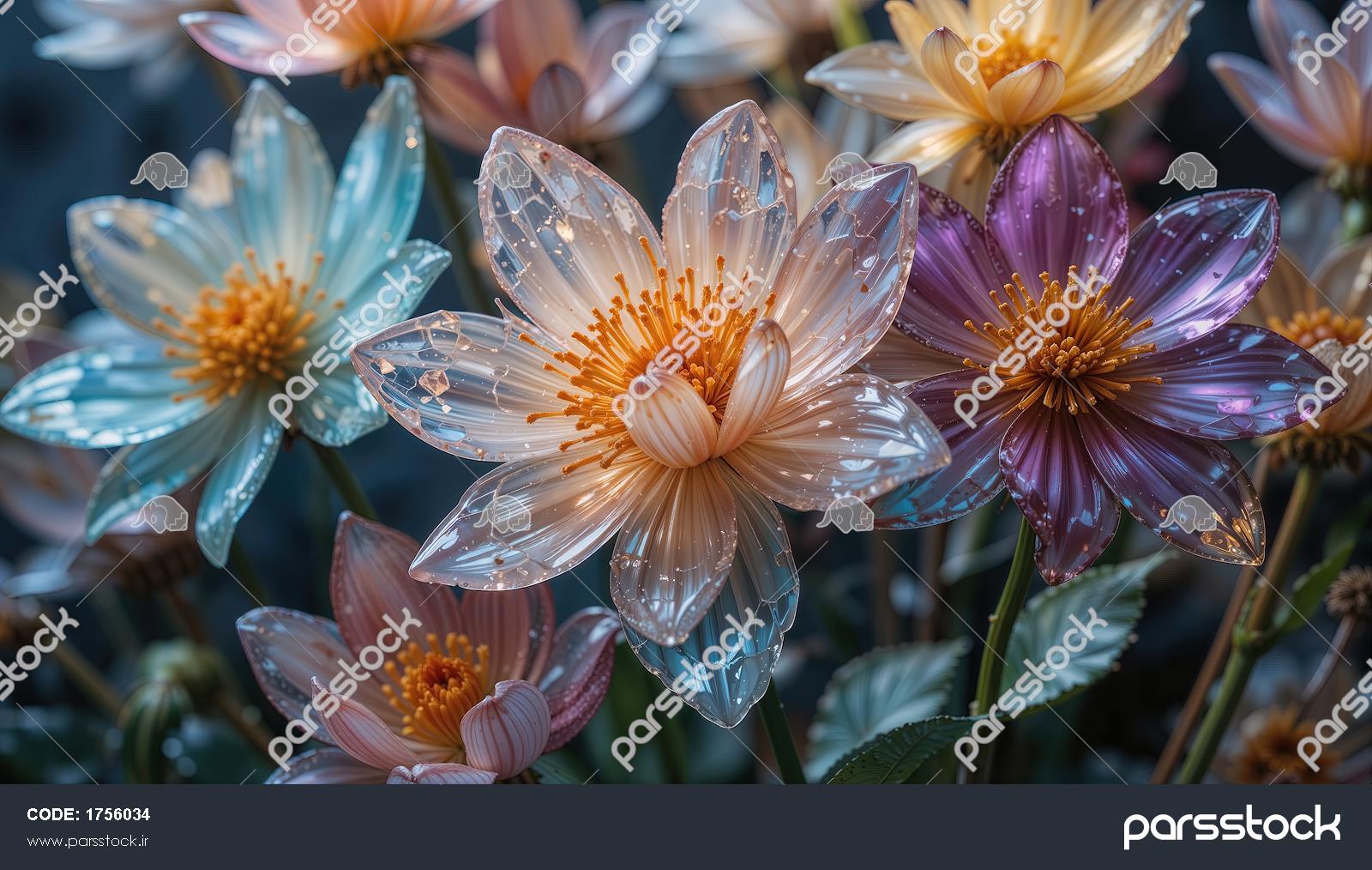 تصویر باکیفیت گلهای نیلوفر کریستالی با شبنم برای پوستر دیواری سالن‌های زیبایی و کلینیک‌ها