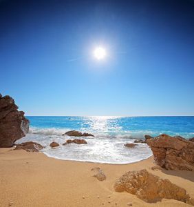خورشید و دریا در ساحل شنی پورتو کاتسیکی در جزیره لفکادا یونان